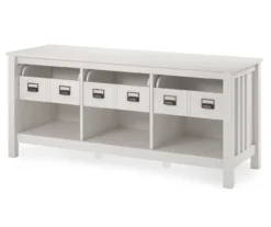 - Offers 2 shelves for media storage and display