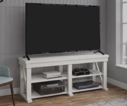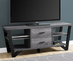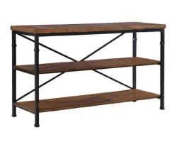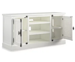 The entertainment console is the obvious focal point of a living room or family room. This cottage-style credenza from Sauder’s Dover Edge collection is ready to be the star of your show. Finished in cool and neutral Glacier Oak, this TV stand will blend perfectly with your existing décor or be the fabulous centerpiece of a living room makeover. Storage dilemmas will be eliminated by this contemporary TV stand, with divided open shelving in the middle that is perfect for holding audio and video equipment or gaming consoles. In addition to shelving, this TV stand has two lower drawers that feature metal runners and safety stops for easy-access storage, making extra room for a collection of DVDS, VHS tapes, video games and more. This stand is the perfect and stylish solution to all your entertainment needs, wrapped up into one fashionable and functional piece.