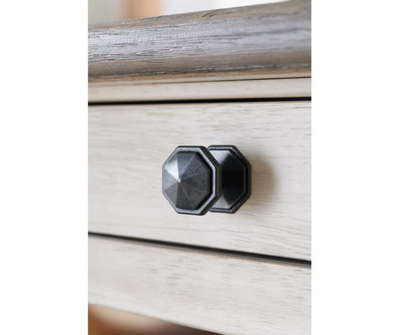 • Plank-effect top in a weathered oak finish