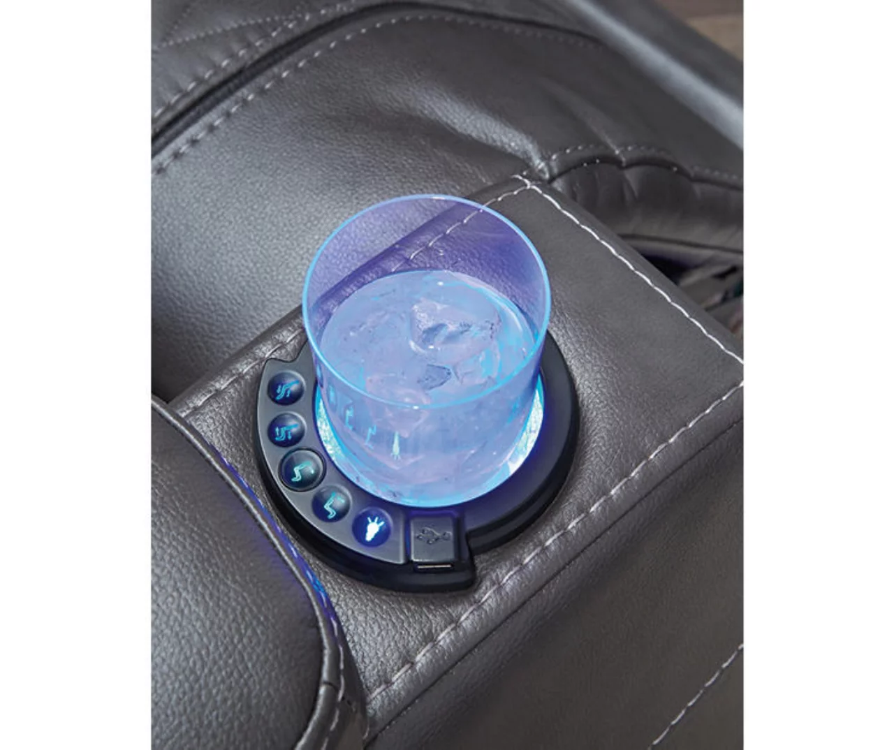 • Ambient blue LED lighting on cup holders and base for a theater-style experience