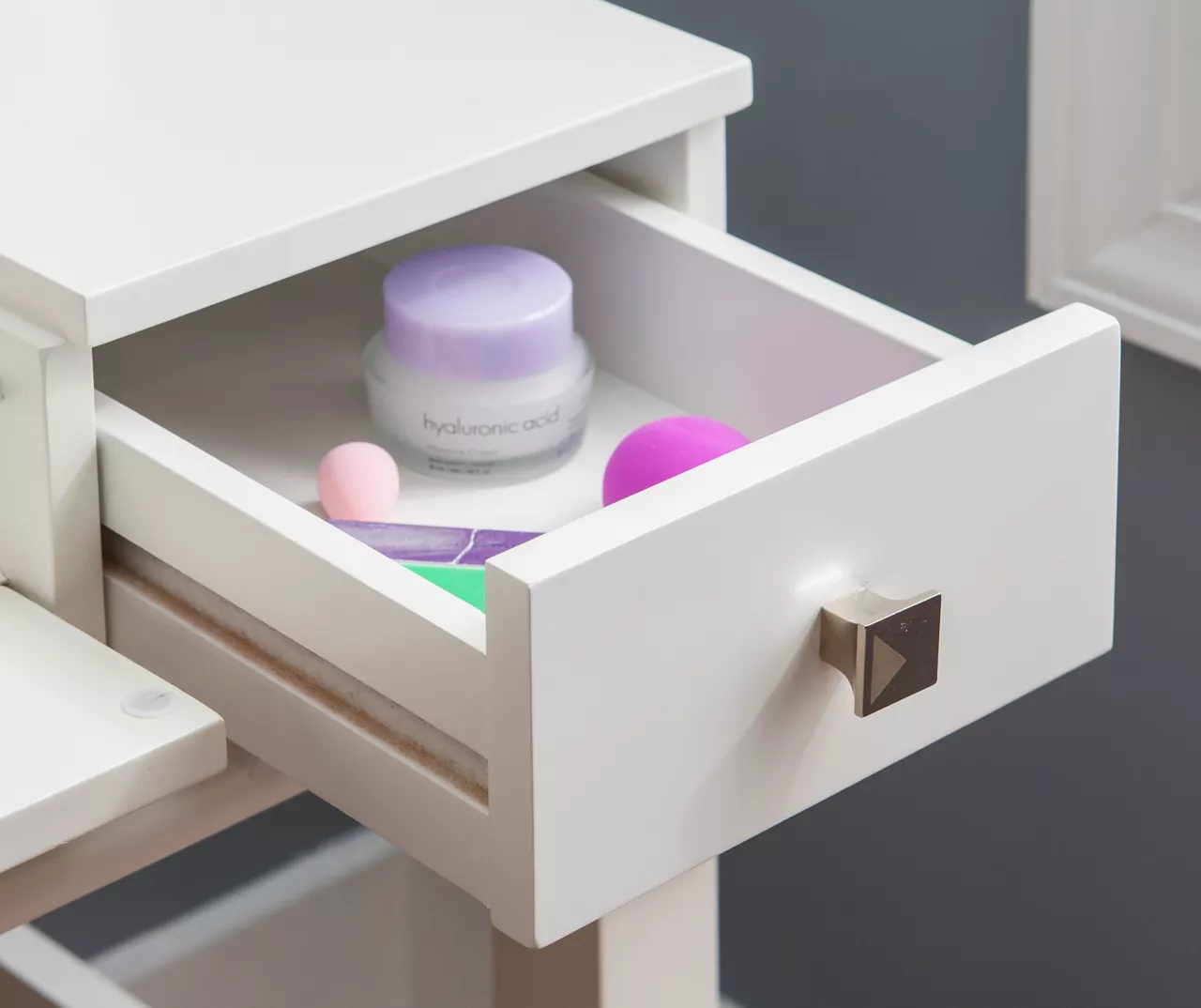 • 2 – Side drawers for jewelry, makeup or perfume storage