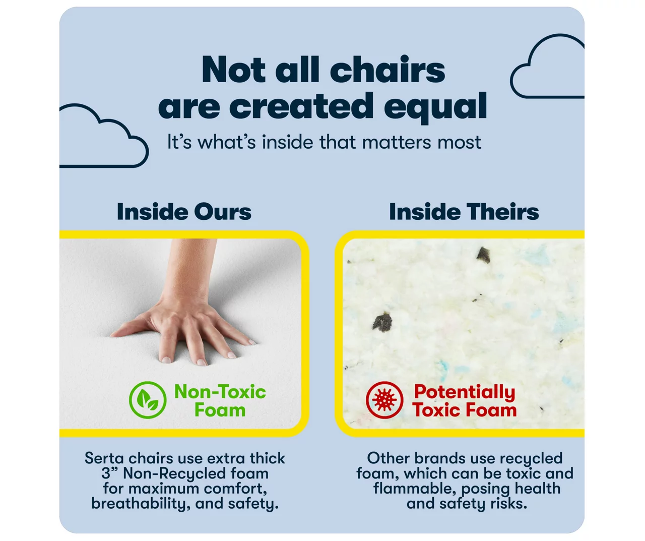 Bring relaxation to your busy workday with the Serta Executive Office Chair. Serta kept comfort in mind while designing this desk chair with luxurious layered body pillows, a contoured lumbar zone and padded armrests for all day ease and exceptional support during long periods of sitting. The waterfall seat edge reduces pressure on the back of the legs and increases circulation, which helps decrease fatigue while seated. The ergonomic office chair features both recline and seat-height adjustment settings, allowing you to find your optimal seating position. The heavy-duty painted base with scuff-resistant foot pads is designed for long-lasting, reliable use. This desk chair is upholstered in supple bonded leather with contrast stitching for comfort and style in any workspace.