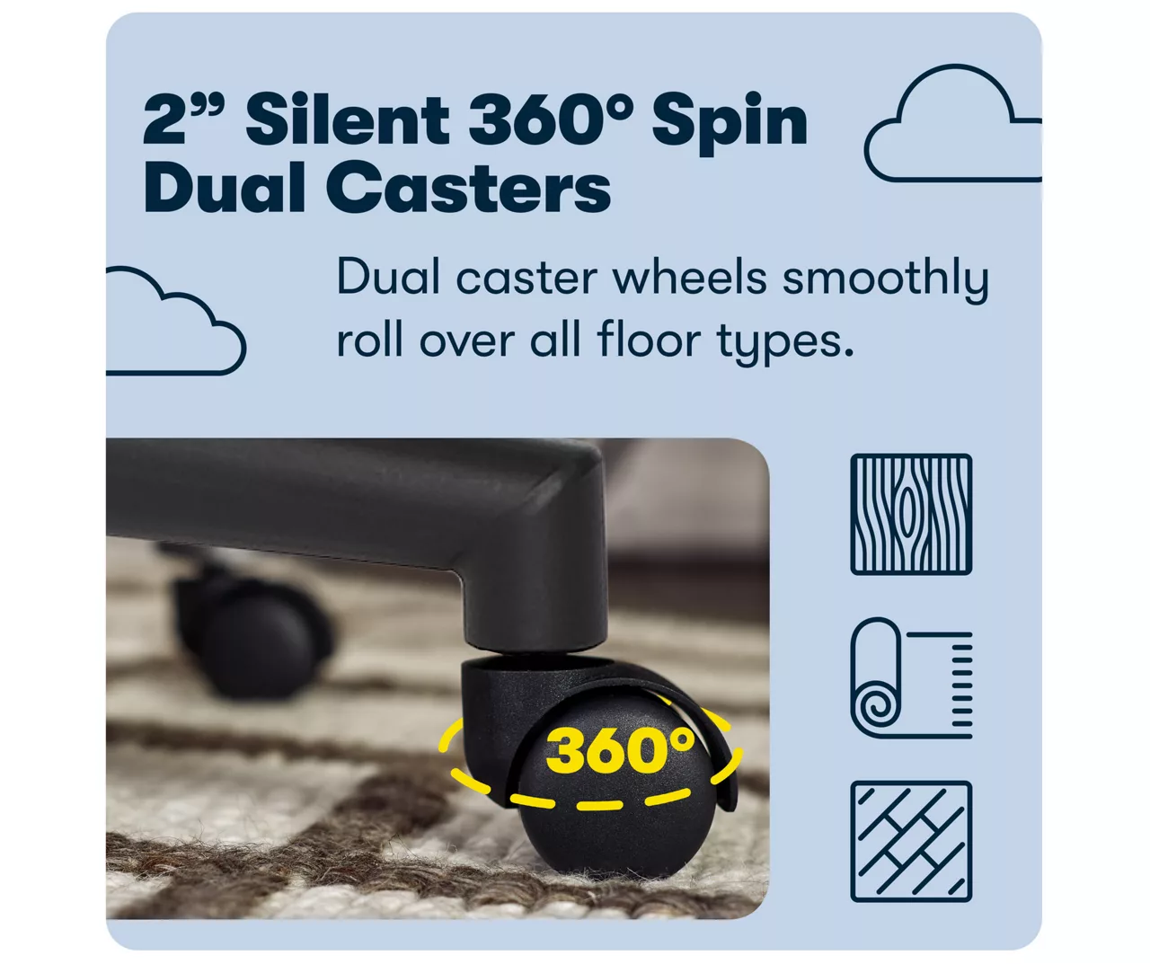 - Durable 5-star base with easy gliding caster wheels