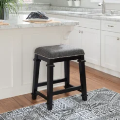 Clark Black & White Upholstered Tweed Backless Counter Stool