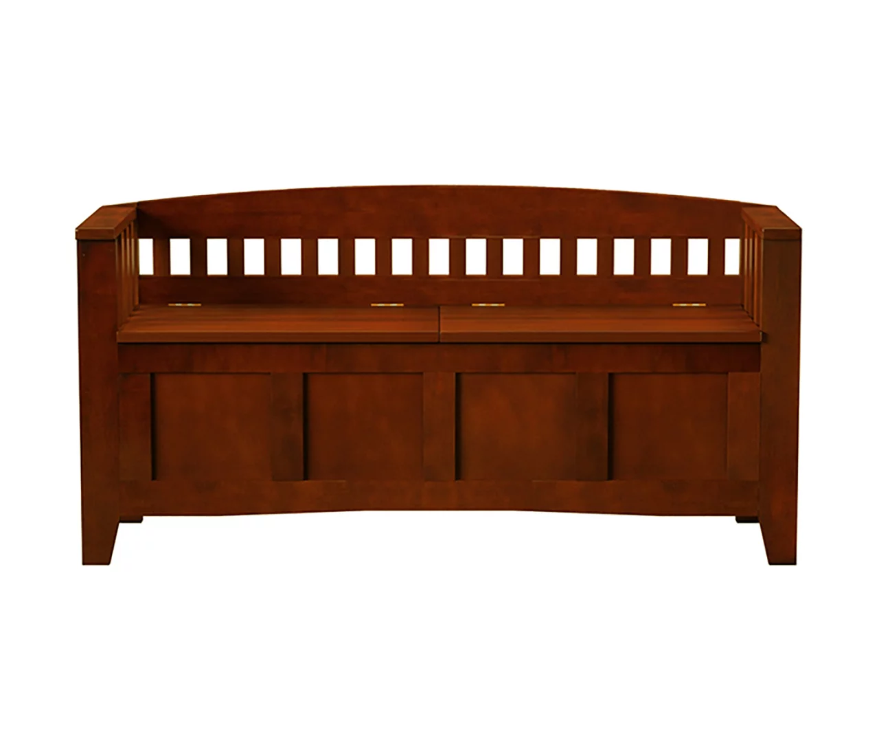 Transform your entryway or mudroom with this handsome storage bench. With its rich walnut finish and classic slat back design, this bench complements any style or color scheme with ease. The split seat offers easy access to a spacious storage compartment perfectly designed for storing shoes, winter gear or even toys giving you a neat and organized home.
